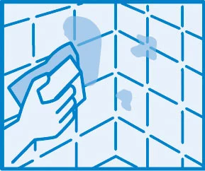 Eventuell schadhafte Stellen an Fliesen oder Fliesenfugen mit Polyester- oder Epoxydharz-Spachtelmasse gründlich ausbessern vor dem Anstrich und nach dem Durchhärten mit feinem Schleifpapier (P320) nass eben schleifen. Schleifrückstände abspülen und trocknen lassen. Erhöhte Luftfeuchtigkeit ablüften. Temperatur beachten! Haarrisse in den Fugen müssen mit Acryl-Fugenmasse ausgebessert werden.