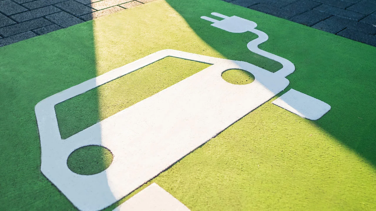 Video | Parkplatzmarkierung für Elektroautos mit dem 2K-Rollplastik von JAEGER